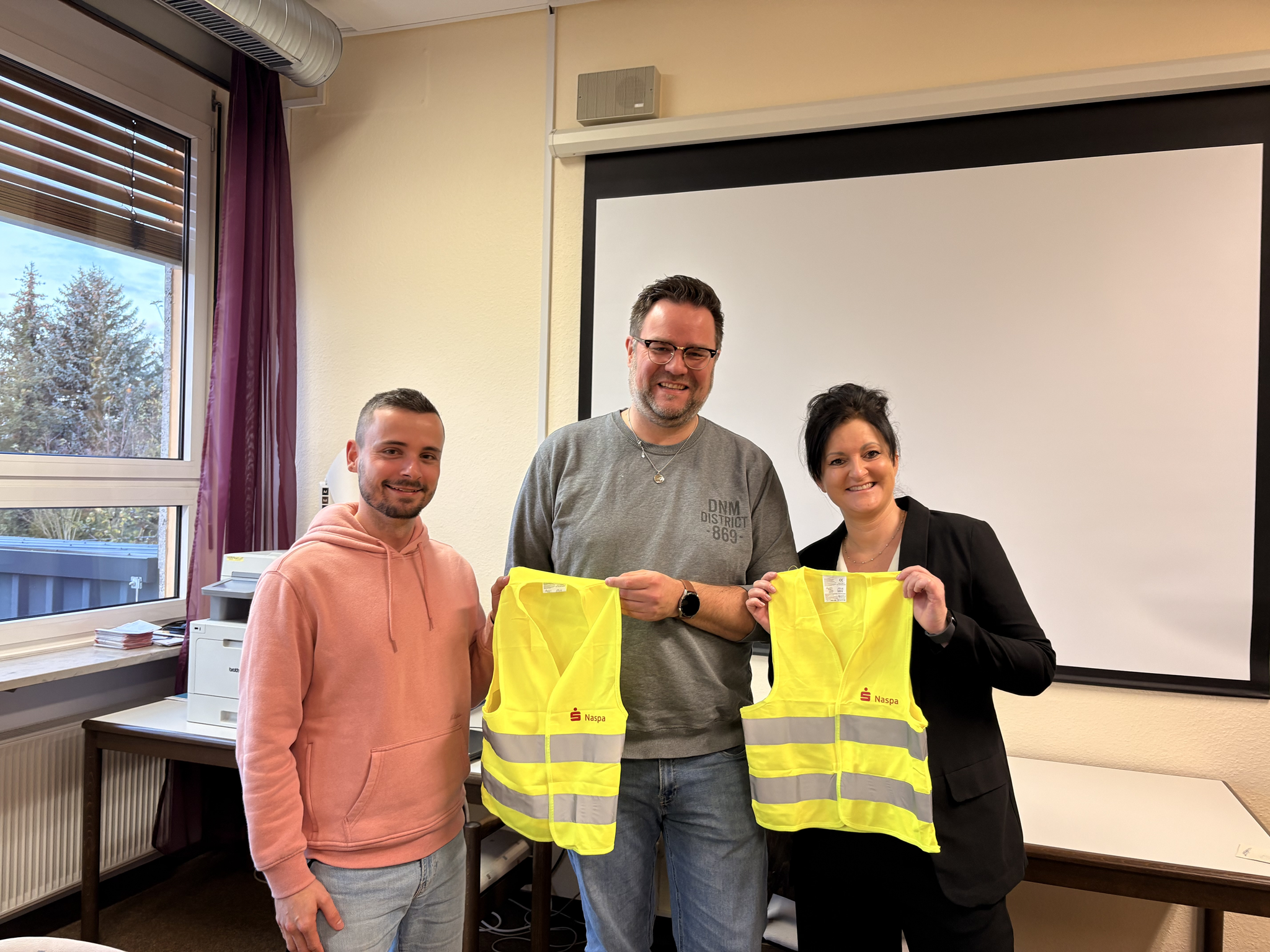 Die Geschäftstellenleiterin der Naspa Nastätten, Carina Mosel, überreichte in der vergangenen Woche für jedes Kind der Klassenstufe 1 eine Warnweste. Gerade jetzt in der dunklen Jahreszeit unterstützen die Westen, dass die Kinder auf Ihrem Schulweg besser gesehen werden. André Holzkämper (Klassenlehrer in der Stufe 1) und Henrik Mosel (Schulleiter) nahmen die Warnwesten mit Freude entgegen und verteilten sie direkt in die Klassen. Dort werden sie in den nächsten Tagen im Rahmen einer Unterrichtseinheit zum Thema „Hell-Dunkel“ an die Kinder ausgegeben. Dann sind die Schülerinnen und Schüler gewappnet für die dunkle Jahreszeit.